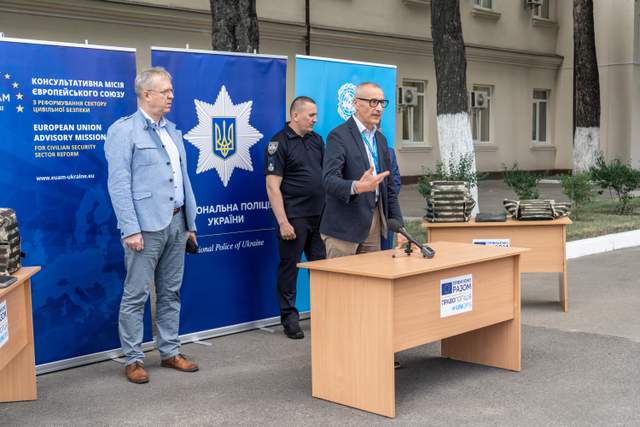 Участь у передачі захисного спорядження взяв голова Консультативної місії ЄС Антті Хартікайнен. Він зазначив, що надзвичайна відвага правоохоронців вражає у непростий час війни.
