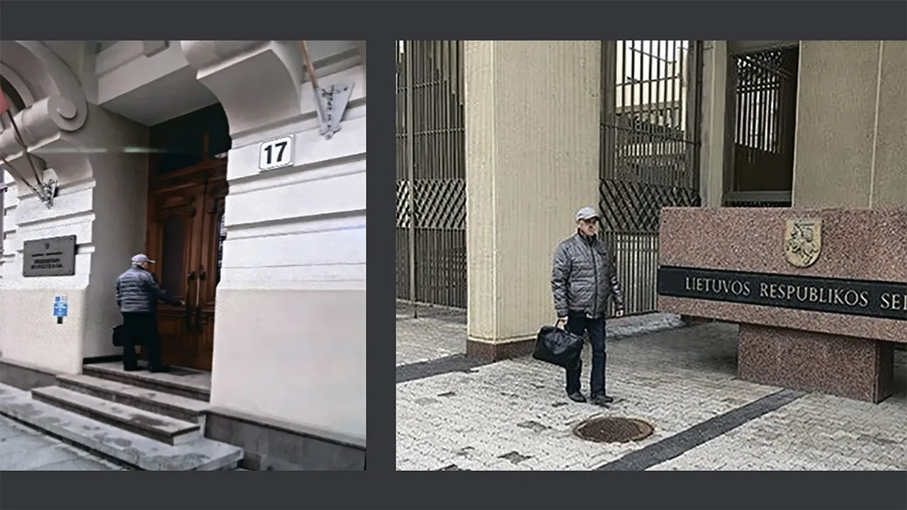Двійник Пригожина біля будівель держорганів Литви / фото Департаменту державної безпеки Литви