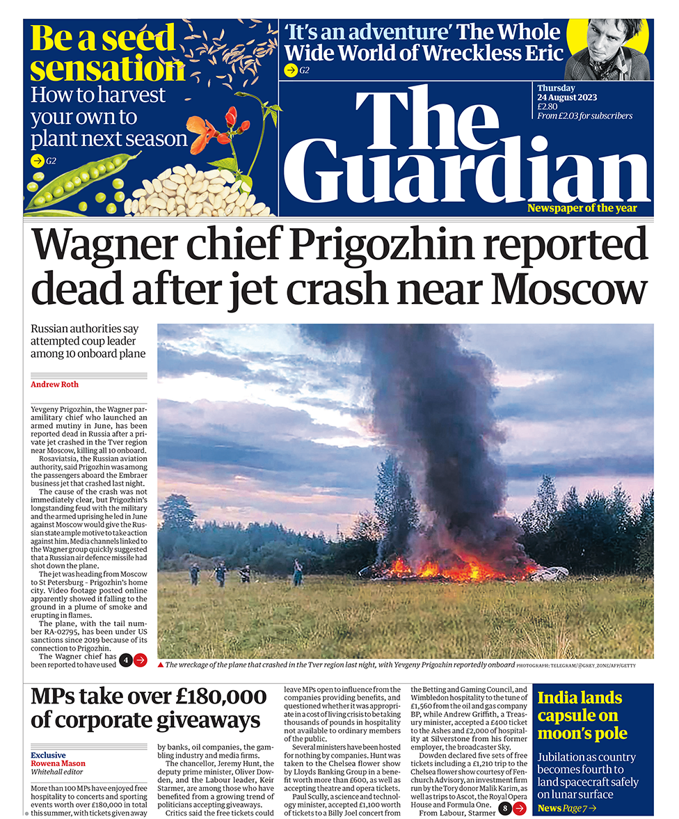 Водночас джерела BBC у британській розвідці стверджують, що, найімовірніше, літак Євгена Пригожина був атакований російською внутрішньою розвідкою ФСБ. Вони повністю лояльні до Владіміра Путіна, а також керують прикордонними військами.