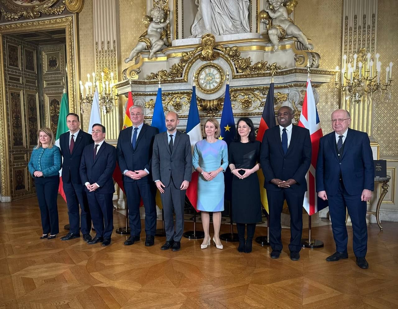 Як повідомили в МЗС, міністри закордонних справ України, Франції, Великої Британії, Іспанії, Італії, Польщі, Німеччини та Європейського Союзу заявили, що вони віддані незалежності, суверенітету та територіальній цілісності України "перед лицем загарбницької війни Росії".