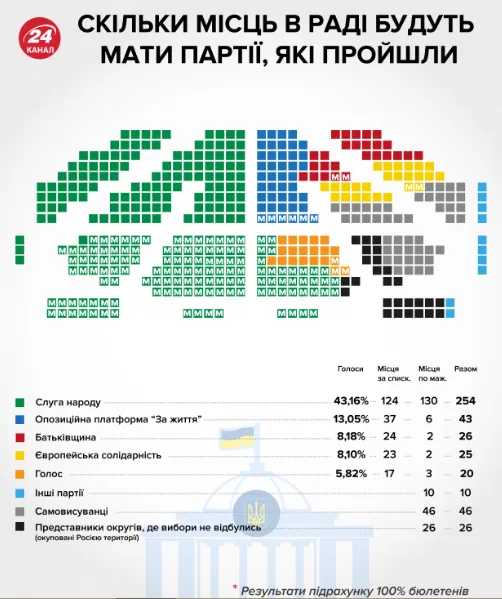 Скільки місць у Верховній Раді займуть партії / Інфографіка 24 канал