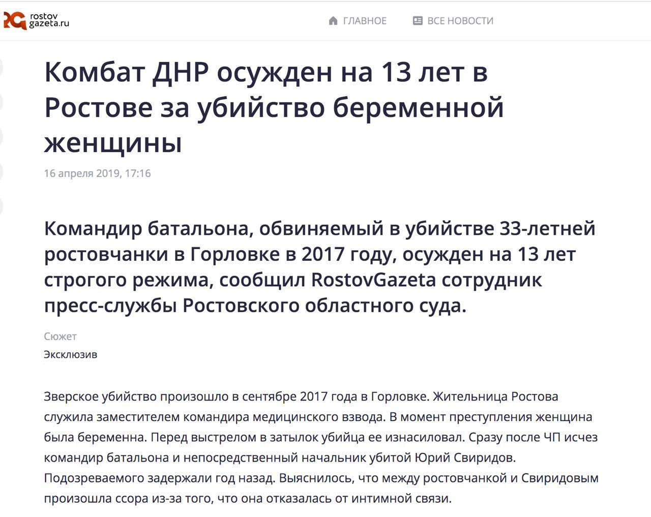 Свиридова засудили у 2019 році на 13 років позбавлення волі. Тоді ж він жорстоко вбив вагітну терористку.