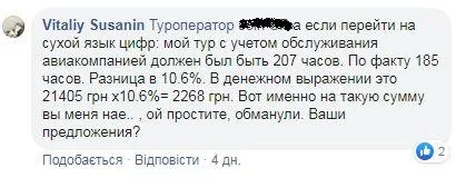 Втім, інші туристи втрачали навіть більше – цілу добу сплаченої відпустки. Ось як прокоментував допис турфірми користувач Фейсбуку: