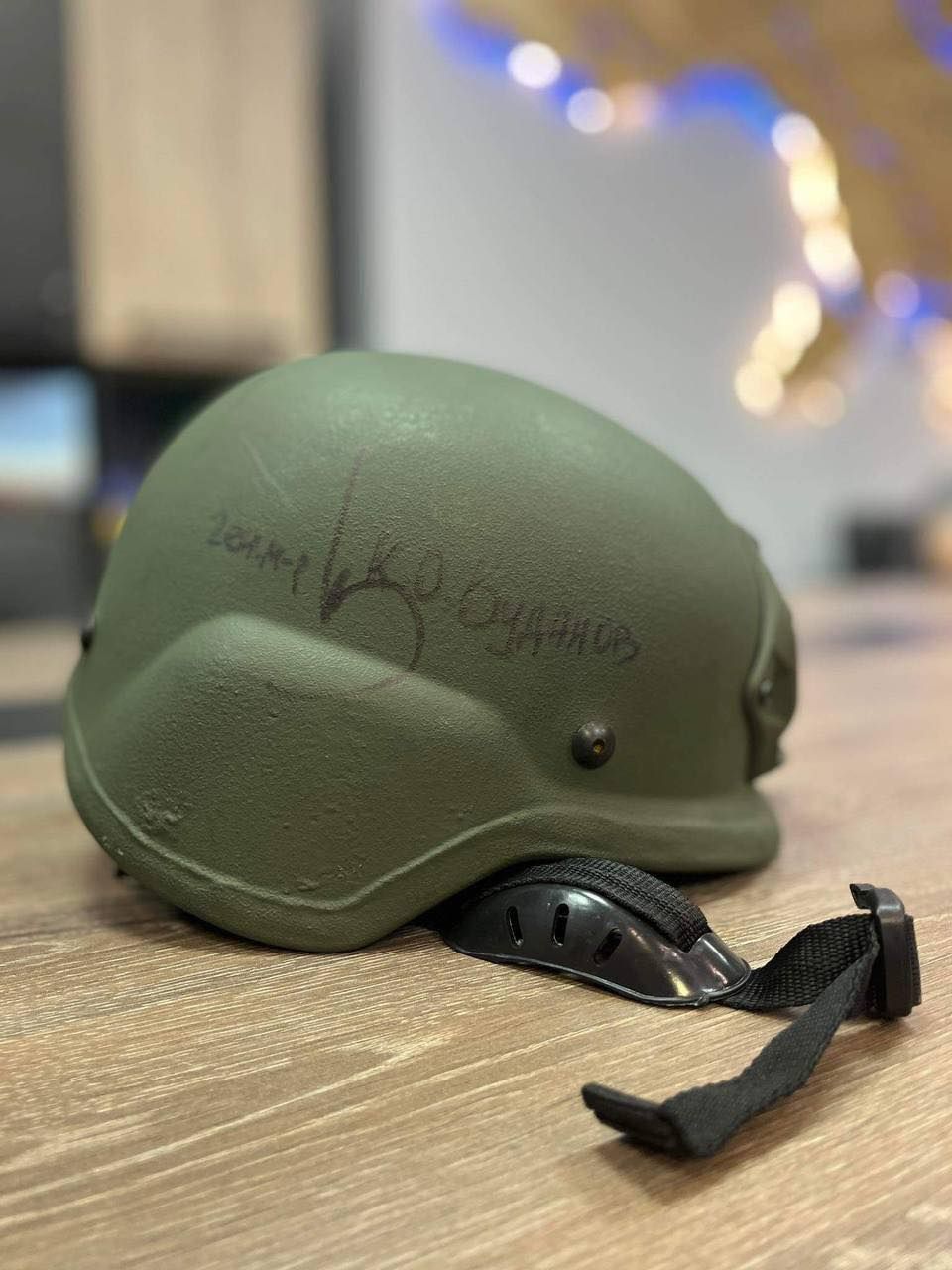 За найбільший донат фонд Сергія Притули подарує особистий шолом очільника ГУР Кирила Буданова, у якому він відвідував позиції наших захисників та захисниць на "нулі" у Бахмуті. На шоломі є підпис Буданова. Шолом керівник ГУР особисто передав Притулі у якості подарунка.