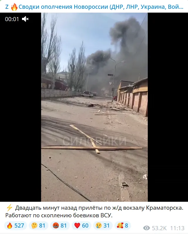 Як російські телеграм-канали брехали про обстріл у Краматорську / Скриншот
