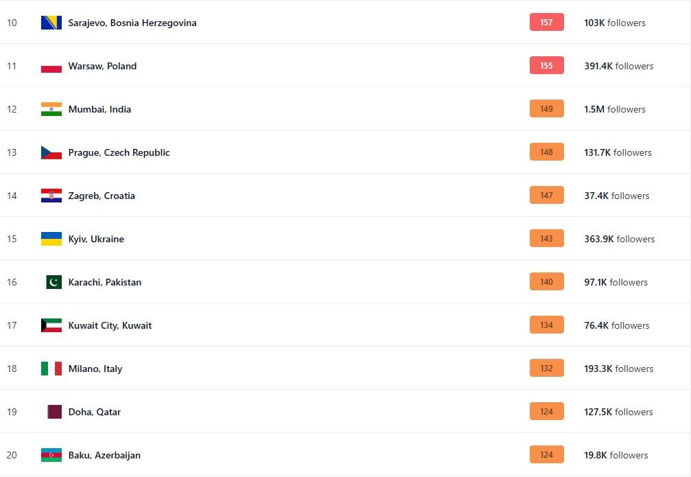 За даними IQAir, станом на 09:45 Київ посідає 17 місце серед найзабрудненіших міст у світі за станом повітря.