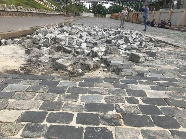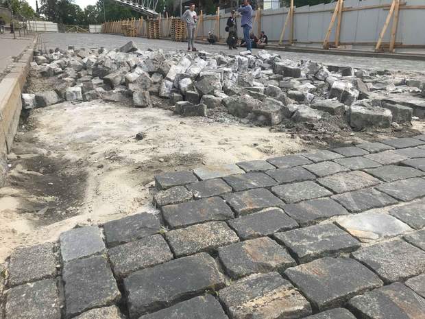 На Інститутській знімають бруківку: фото журналістки 24 каналу