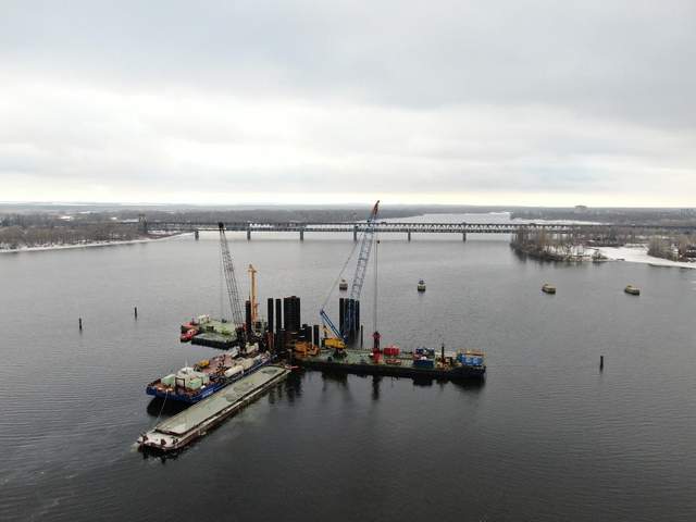 Дивіться фото зі спорудження мосту у Кременчуці / Фото Полтавської ОДА: