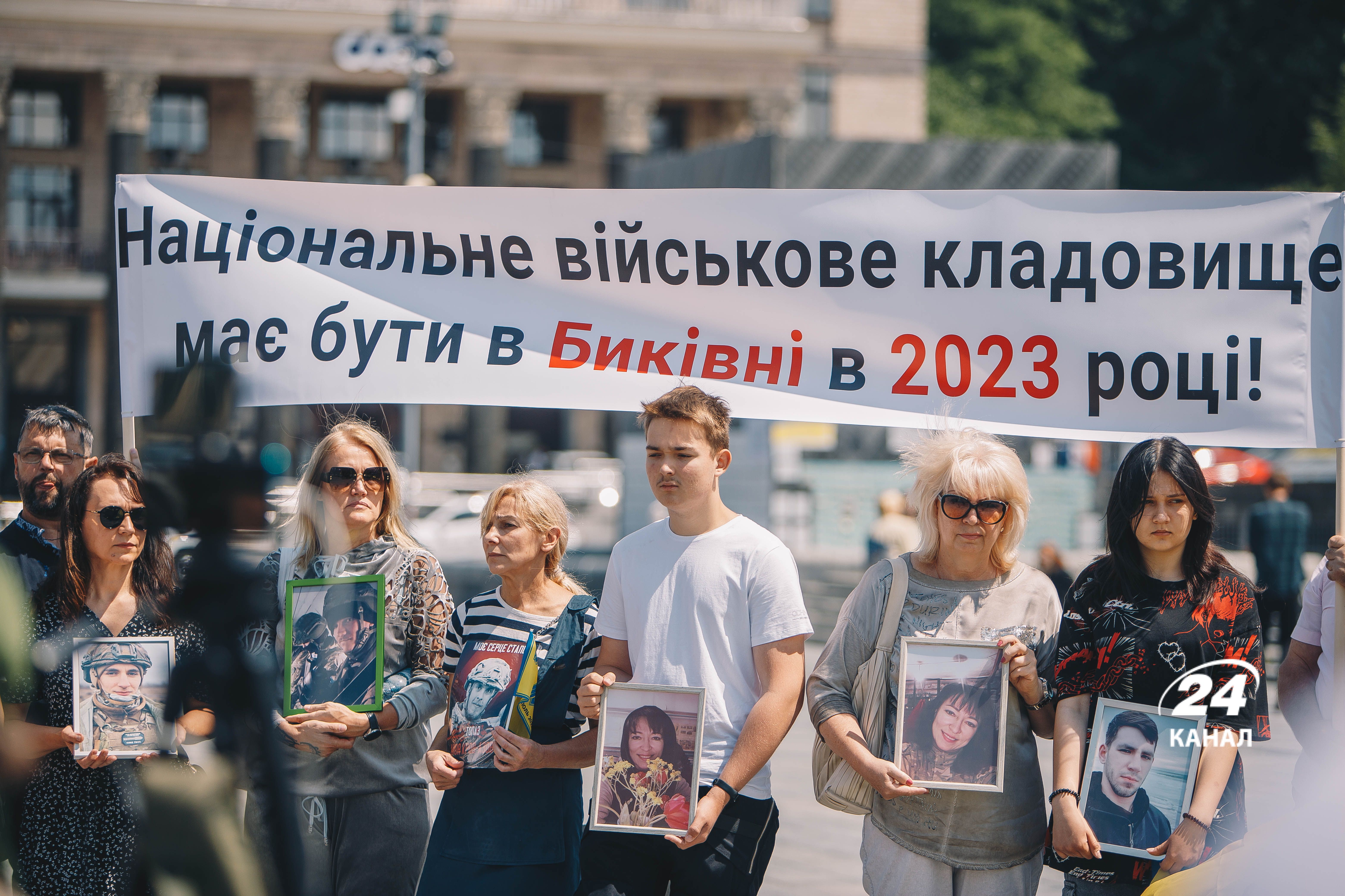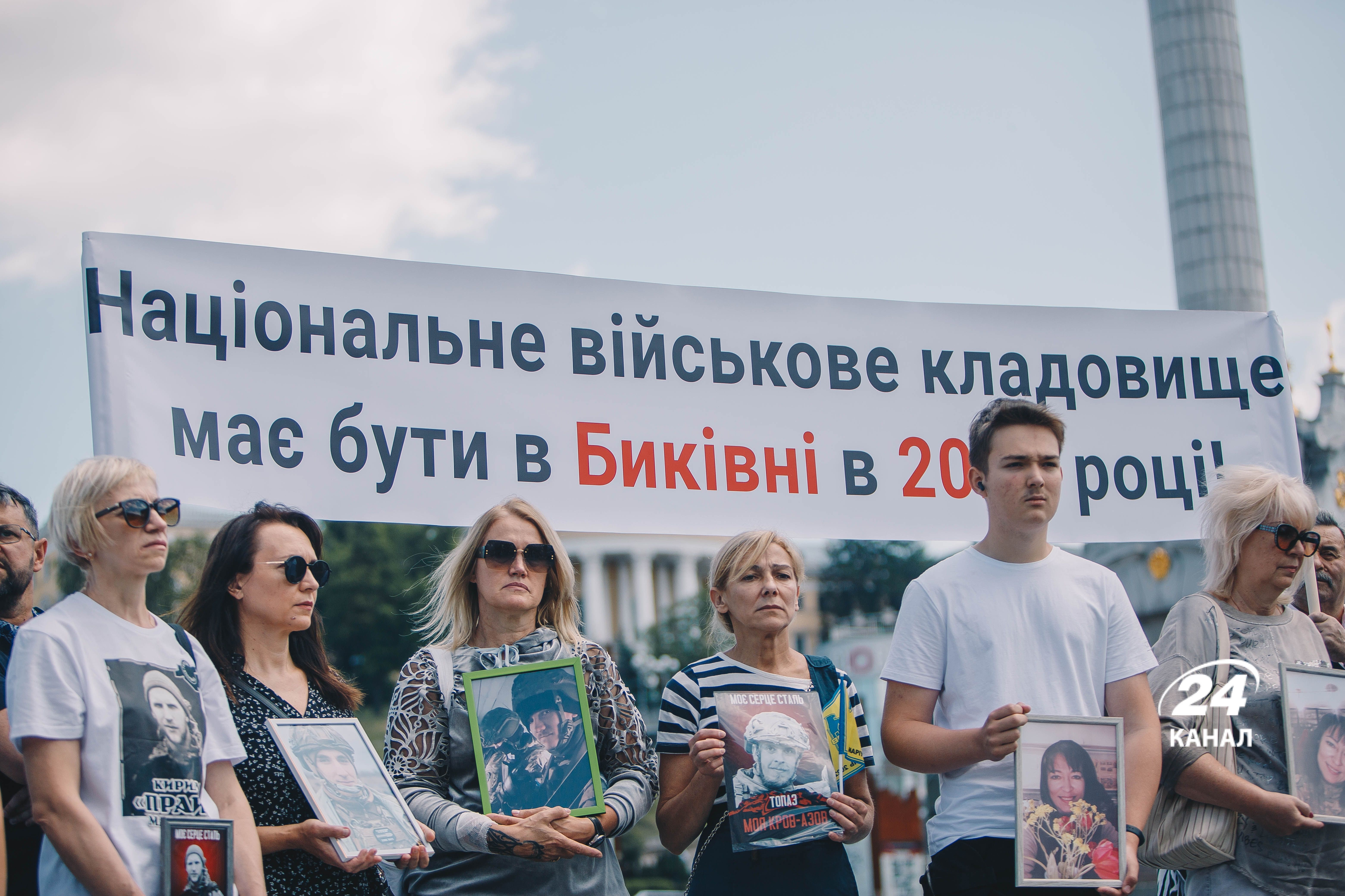 Комунікаційниця організації "Серце назовні", яка влаштувала акцію, пояснила, що 30 червня на Майдані Незалежності зібралися батьки, дружини, діти, родичі, побратими та друзі загиблих Героїв. Їм вже більше ніж рік обіцяють створити військове кладовище, але й досі сім'ї в очікуванні. Першочергово, зверталися до КМДА, згодом почали писати листи й до Офісу Президента.