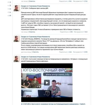 Всі російські сайти терміново "повбивали" переможні новини про збитий український літак. І навіть горе-"герой" Гіркін-Стрєлков "почистив" свою сторінку. Подивіться, яка разюча різниця!