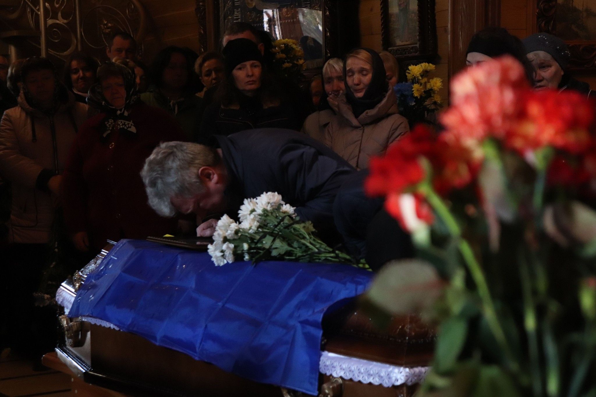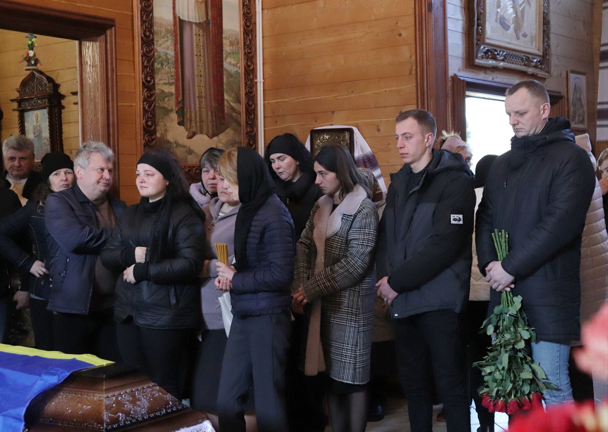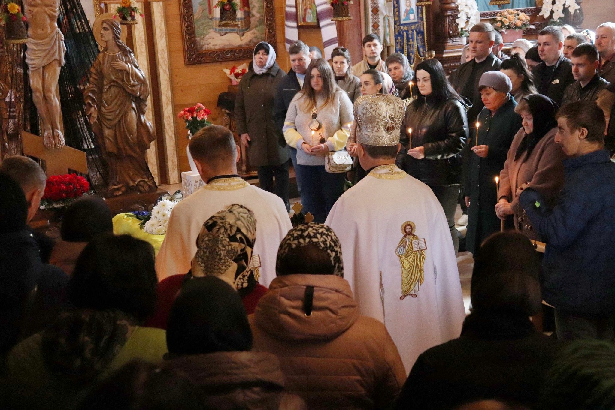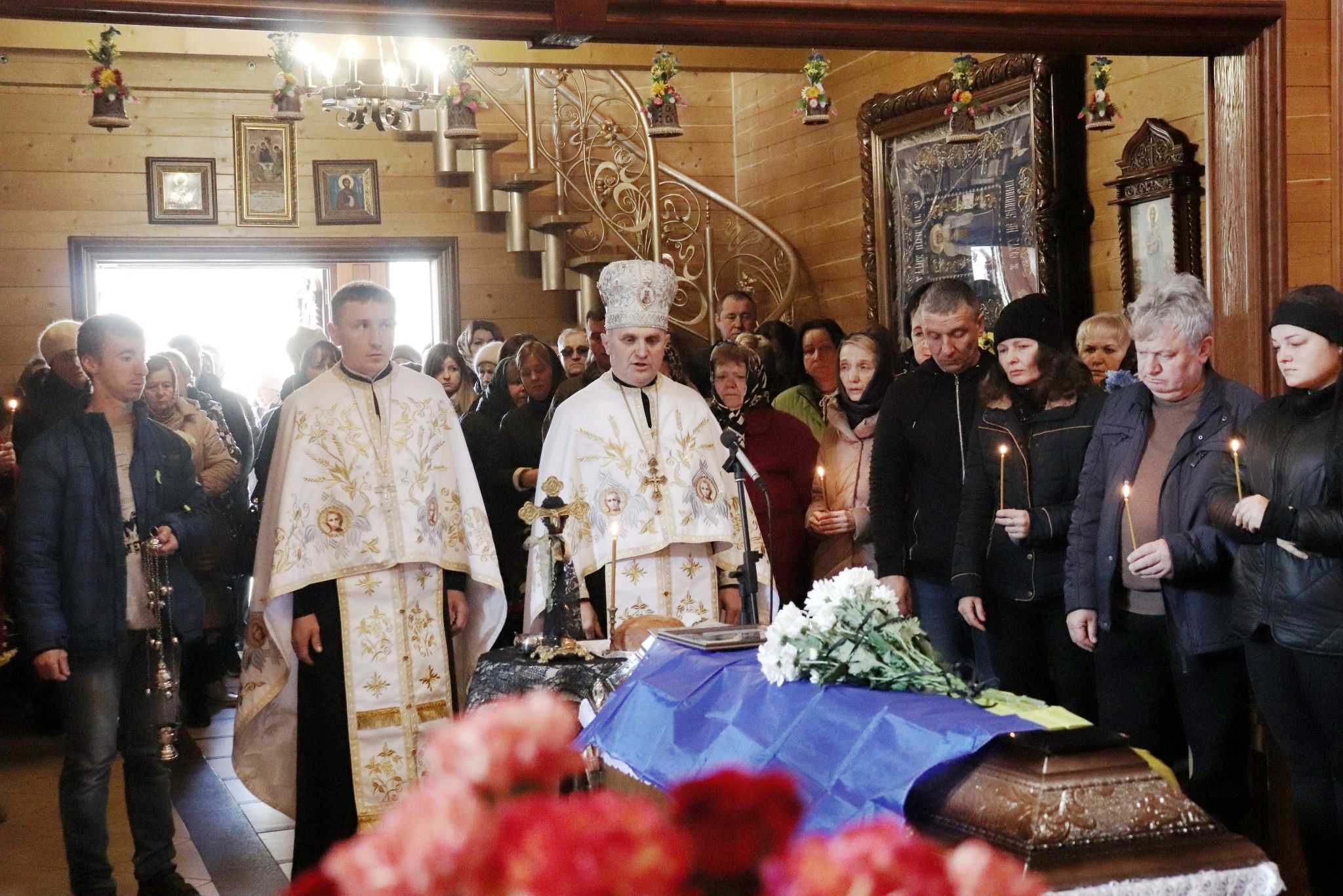 Разом з великою скорботною родиною сумує вся громада. Живим коридором шани, з оберемками квітів, під звуки військового оркестру містяни провели Героя до храму Віри, Надії, Любові, де священники відслужили чин похорону.