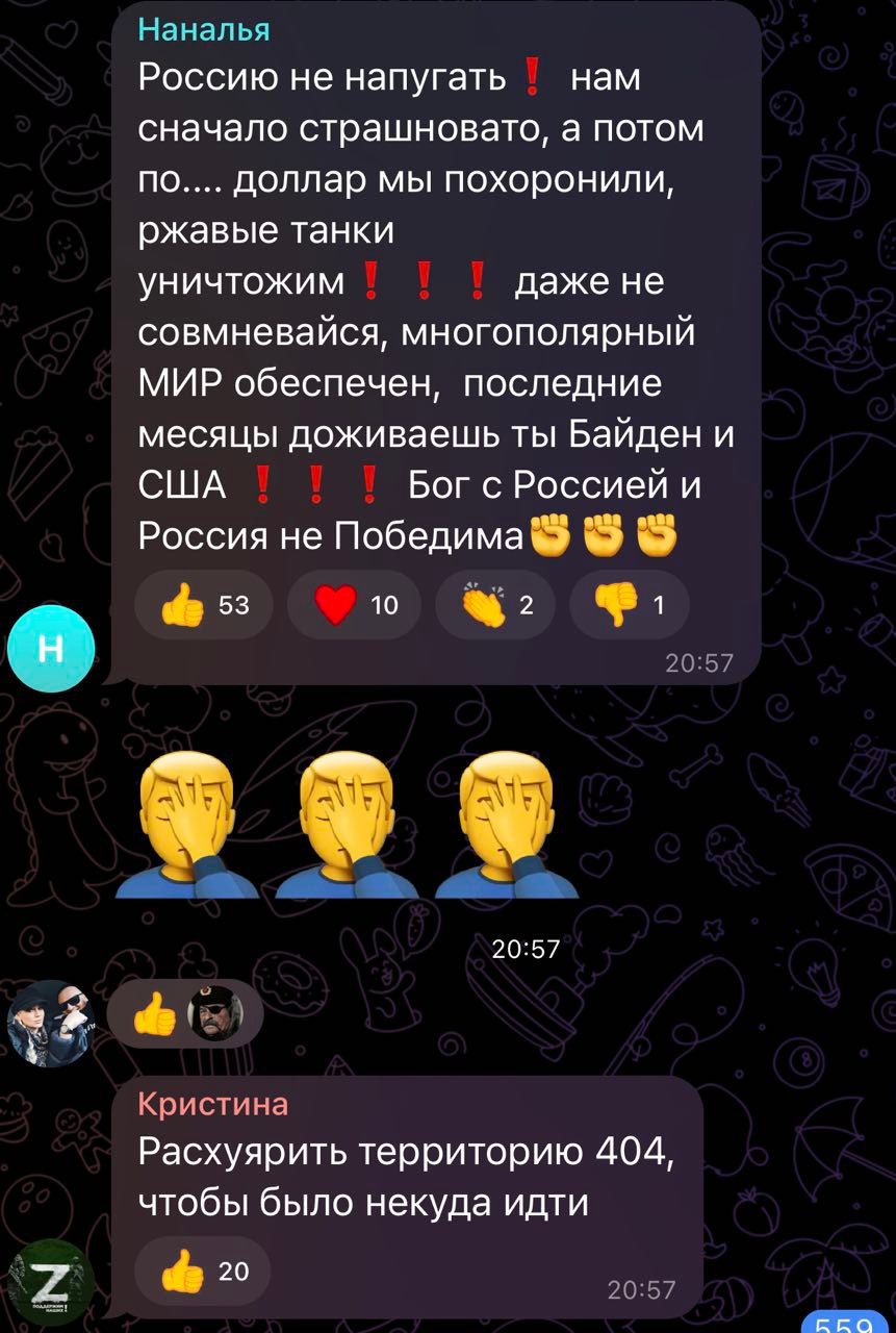 Росіяни проклинають Захід / Скриншот з ворожих пабліків