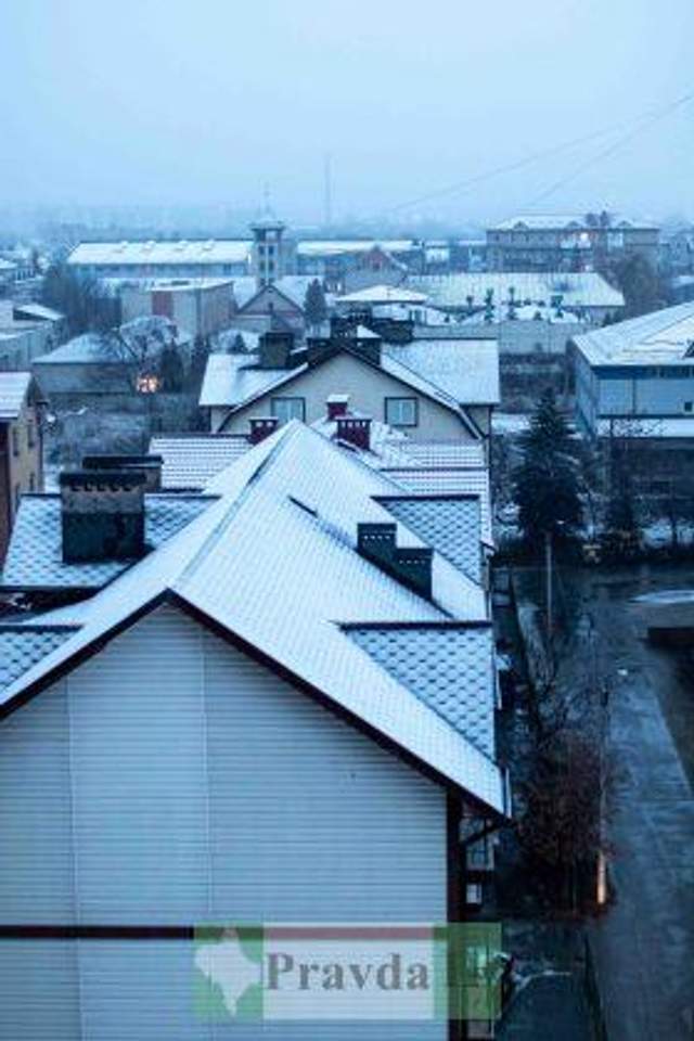 Мешканці Івано-Франківська 3 грудня також прокинулися у сніговій казці. І, хоча кількість опадів там була меншою ніж на Львівщині, тротуари та дахи будинків трохи припорошені снігом.