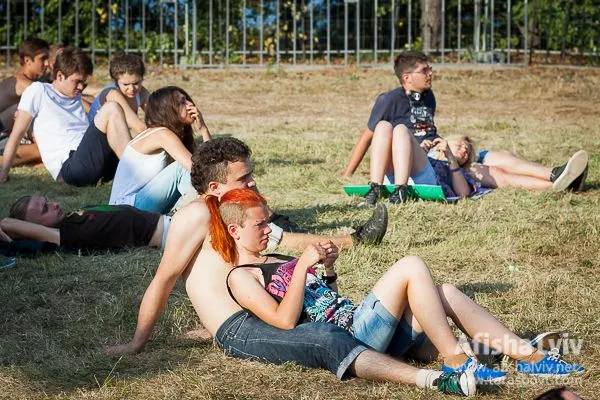 Загалом люд був ну дуже різноманітний. Давненько я не бачила дебелих хлопчаків з ірокезами. А ще й поряд з милим хіпстером у шляпці та дівчинкою з дредами у растаманській шапочці… Малята у майках «Цой», волохато-патлаті рикаючі хлопчаки, яких ззаду я іноді з дівчатками трохи плутала…