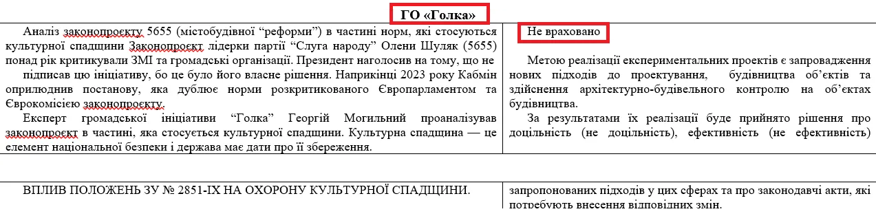 Аналітик громадської ініціативи "Голка" Георгій Могильний підготував документ на майже 100 сторінок і опублікував низку аналітичних статей, аргументуючи ризики для культурної спадщини та спростовуючи міф про "автоматизацію". Втім, у Мінінфраструктури не врахували жодного зауваження.