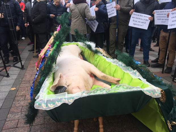 Аграрії перекривали головні магістралі країни на знак протесту, їхали до Києва і мітингували під Радою, приганяли техніку і приносили мертву свиню у труні – символ занепаду українського фермерства.