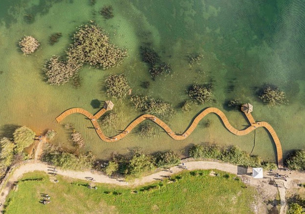 Головною визначною пам'яткою є мальовничий пішохідний міст, який витончено перекидається через водосховище. Ця дерев'яна споруда пропонує унікальний оглядовий майданчик над прозорими водами, а певні ділянки дозволяють відвідувачам занурити ноги в привабливе бірюзове озеро.