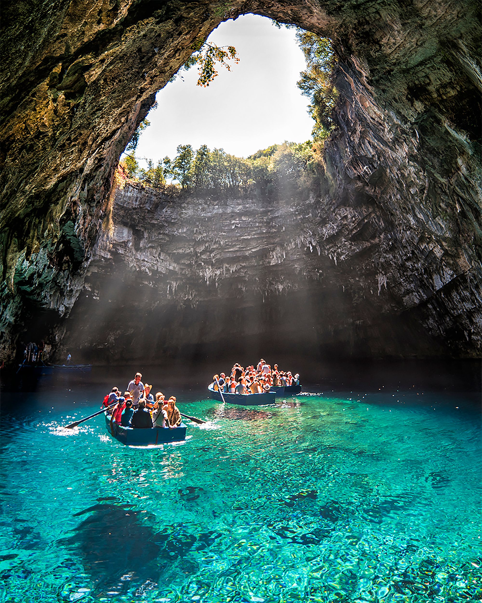 Пещерное озеро Мелиссани на острове Кефалония – одно из самых потрясающих природных чудес Греции. Это подземное озеро, обрамленное сталактитами и сталагмитами, имеет кристально чистые воды, меняющие оттенок от бирюзового до изумрудного в зависимости от времени суток и положения солнца, рассказывает Travel + Leisure.