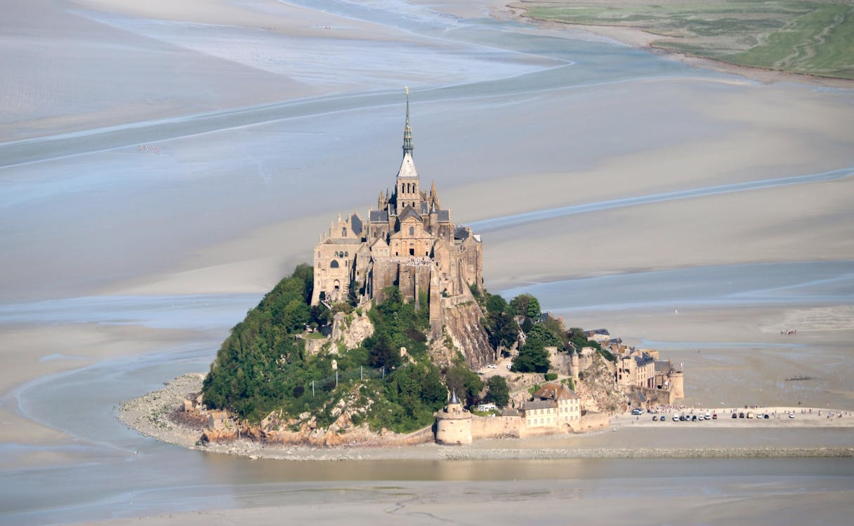 Остров со средневековым аббатством стремительно поднимается из моря у побережья Нормандии. Он окружен песками и мелководьем и является одной из самых известных французских локаций.