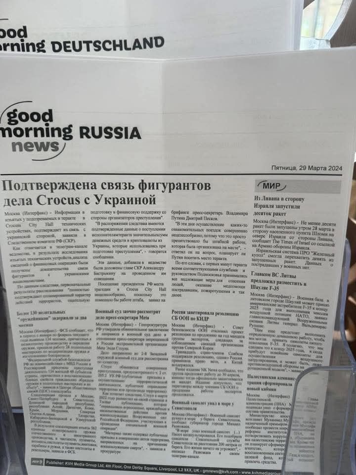 Пророссийские бюллетени размещают на информационных стендах и выдают на рецепциях в популярных отелях Шарм-эль-Шейха, Хургады и других курортных городов. Их название – "Good Morning News". Все новости являются перепечатками из российского пропагандистского агентства "Интерфакс".