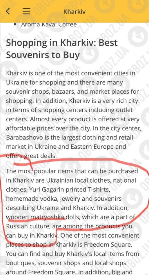 Скриншоты из "путеводителей" по городам Украины: изображение с сайта Oboz.ua