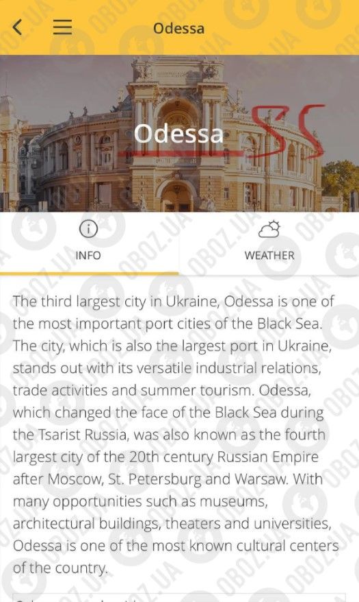 Более того, компания до сих пор указывает русский вариант названия города – "Odessa". Хотя в переводе правильно указывать именно транслитерацию с украинского языка, то есть "Odesa".
