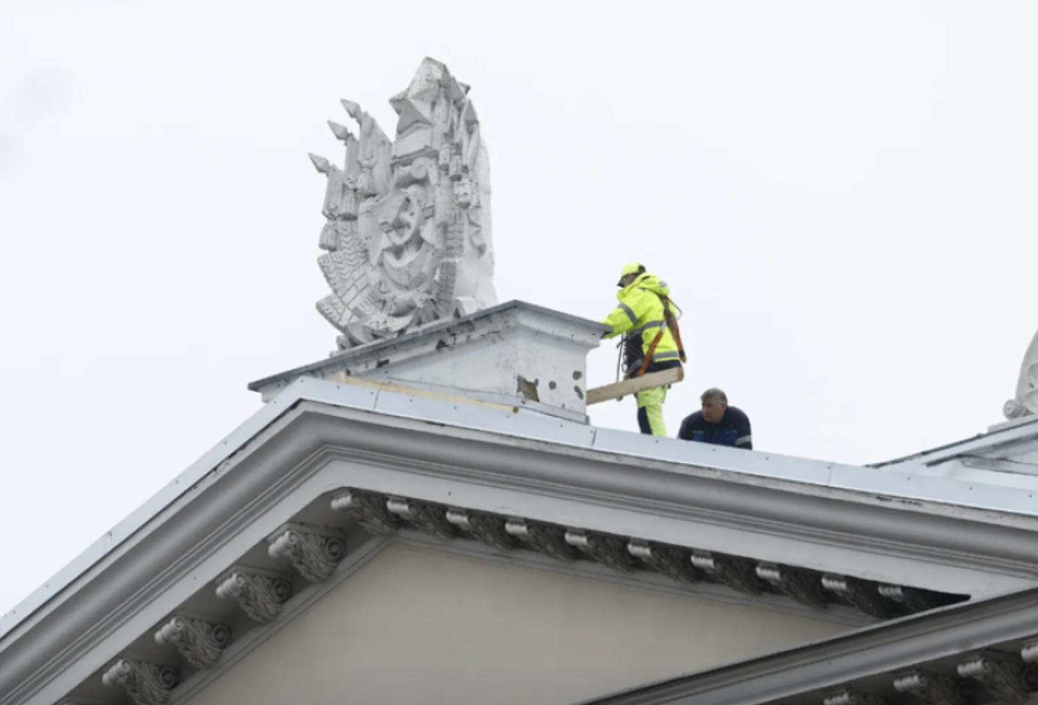 В Таллинне демонтируют советскую символику со здания Центра русской культуры / Фото Tairo Lutter