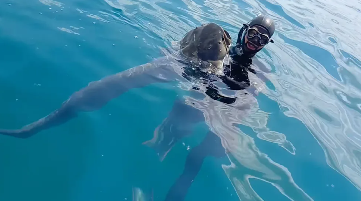 На прошлой неделе эхолот обнаружил фигуру на глубине около 25 метров. Я спустился посмотреть, и сом был почти вдвое больше меня. Я решил не колоть его копьем, потому что считаю, что это мало что дало бы,