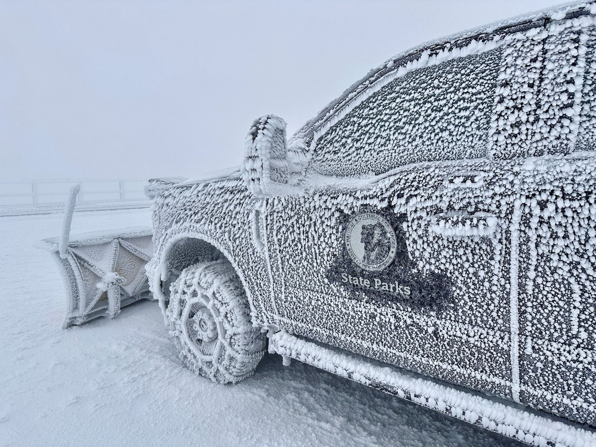 Сегодня утром сотрудники парка проснулись на вершине в условиях настоящей зимы. Небольшой снег, сегодняшняя температура около -20 градусов, ветер до 60 миль в час и показатели охлаждения ветром в однозначных цифрах напоминают нам, что зима на вершине Новой Англии наступает рано,
