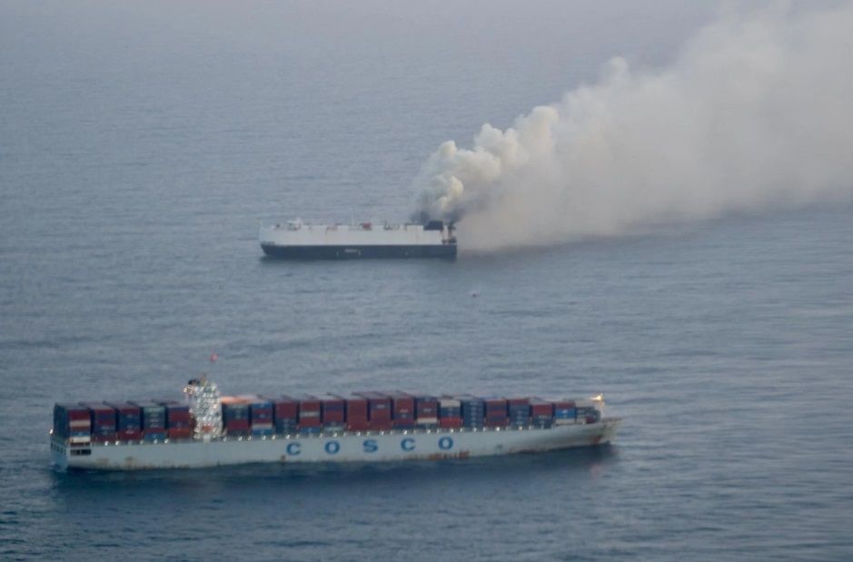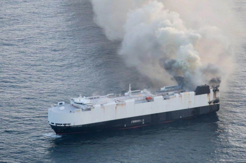 Владельцем судна является британская компания Zodiac Maritime. Она сообщила, что пожар начался с отсека, где перевозили электрокары. Вероятнее всего, сначала загорелась батарея одного из авто, после чего огонь распространился на соседние электромобили.