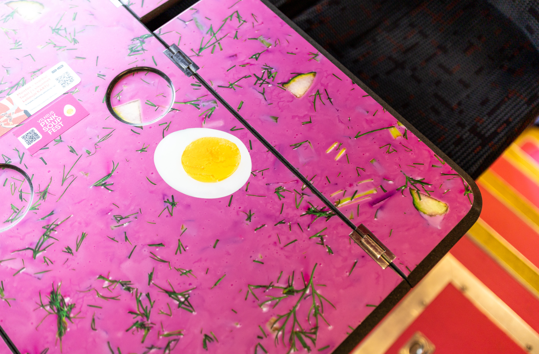 Литовська залізнична компанія LTG Link разом з агентством Go Vilnius представили особливий дизайн поїзда Вільнюс – Рига. Один з вагонів потяга був унікально оформлений у стилі супу-холодника.
