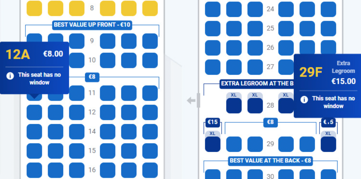 - У літаках Boeing 737-800 і Boeing 737-8200 від Ryanair є місця без вікон, яких слід уникати при бронюванні.