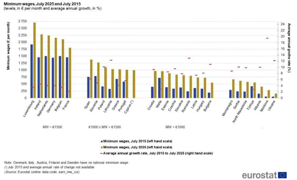 Мінімальна зарплата в країнах ЄС та Європи / Євростат