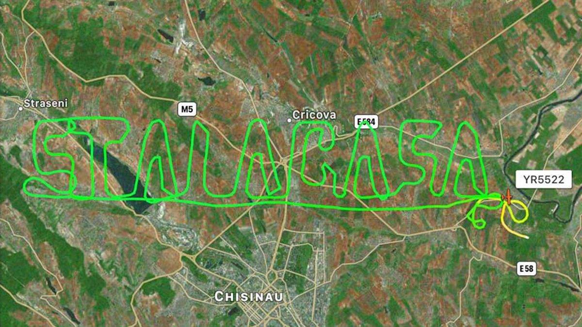 Літак моделі Pipistrel Virus SW100 з реєстраційним номером YR-5522 злетів зі спортивного аеродрому Вадул-луй-Вода. Він намалював повідомлення у небі над Молдовою всього за годину. Послання добре видно за допомогою сервісу Flightradar24.