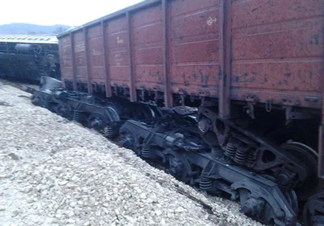 З рейок зійшов один вагон з вапняковим каменем та локомотив.