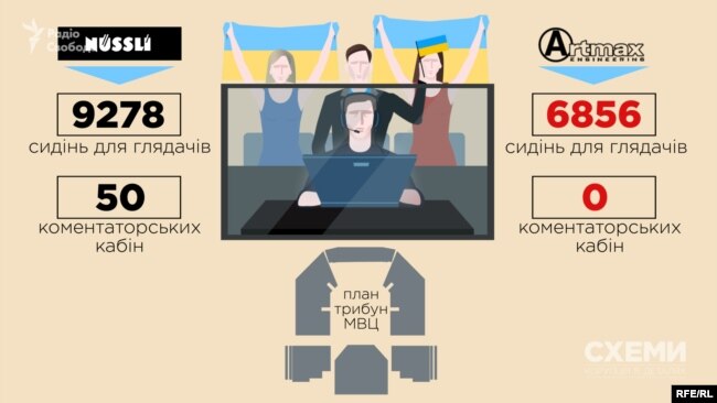 Фірма "Артмакс Інжиніринг" отримає 23,1 мільйона гривень з бюджету за монтаж 6856 сидінь. Німецька компанія Nussli Ltd , яка перемогла на попередньому конкурсі, але згодом отримала відмову, пропонувала збудувати 9200 сидінь та ще 50 коментаторських кабін за приблизно 29,6 мільйонів гривень.