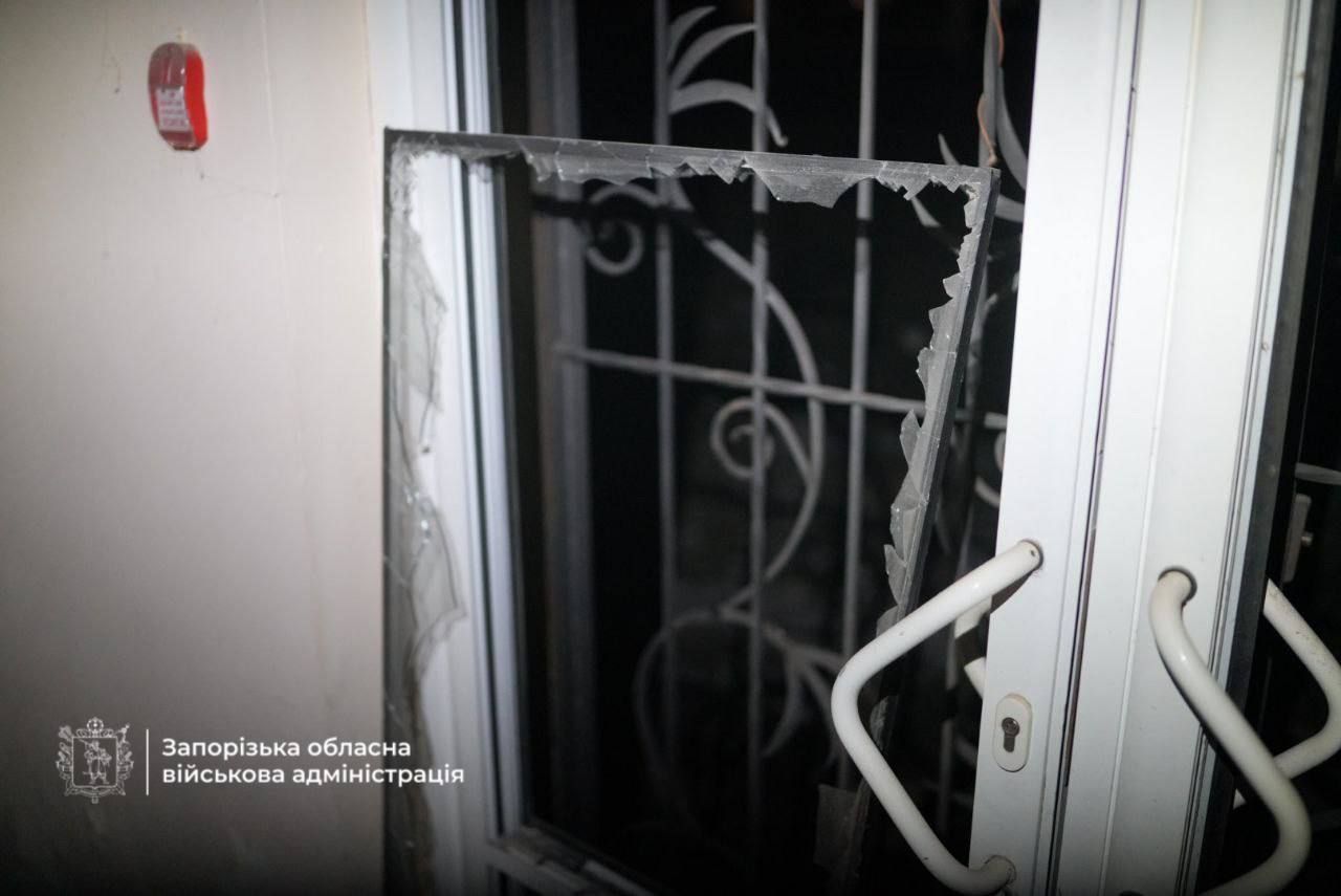 Федоров показав наслідки російської атаки на Запоріжжя. Так, унаслідок удару російського БпЛА частково зруйновано житлову будівлю.