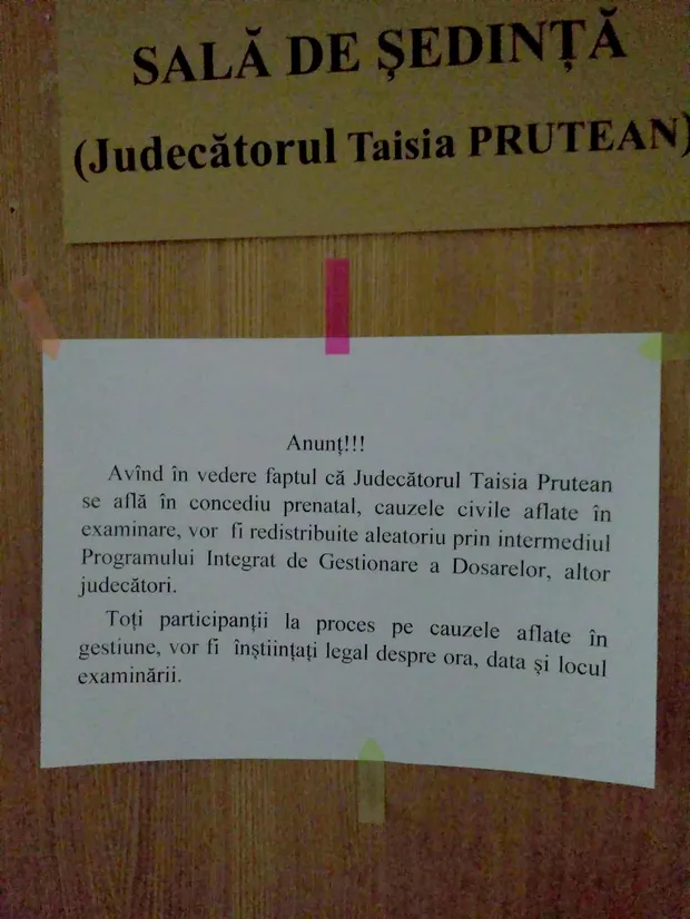 Проте у призначений день журналісти "Радіо Свобода" знайшли на дверях оголошення про те, що через вагітність судді справи будуть перерозподілені або відкладені.