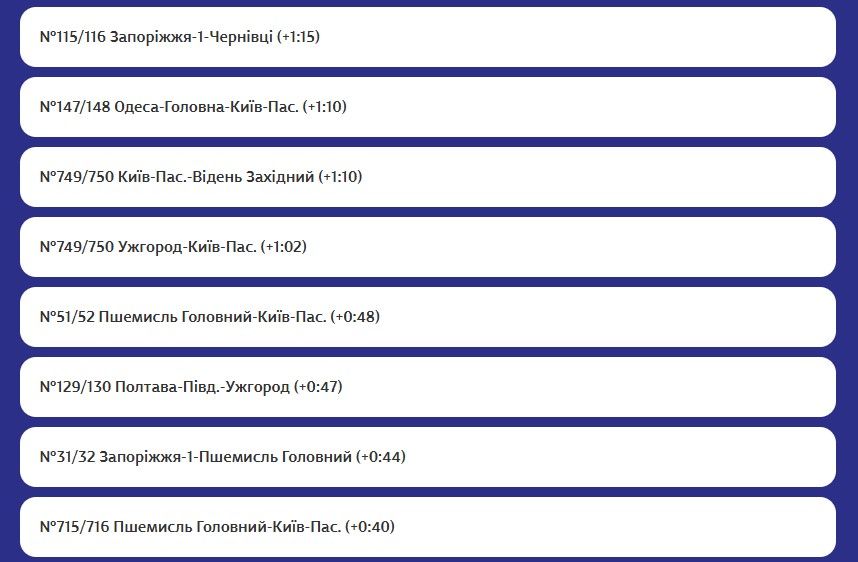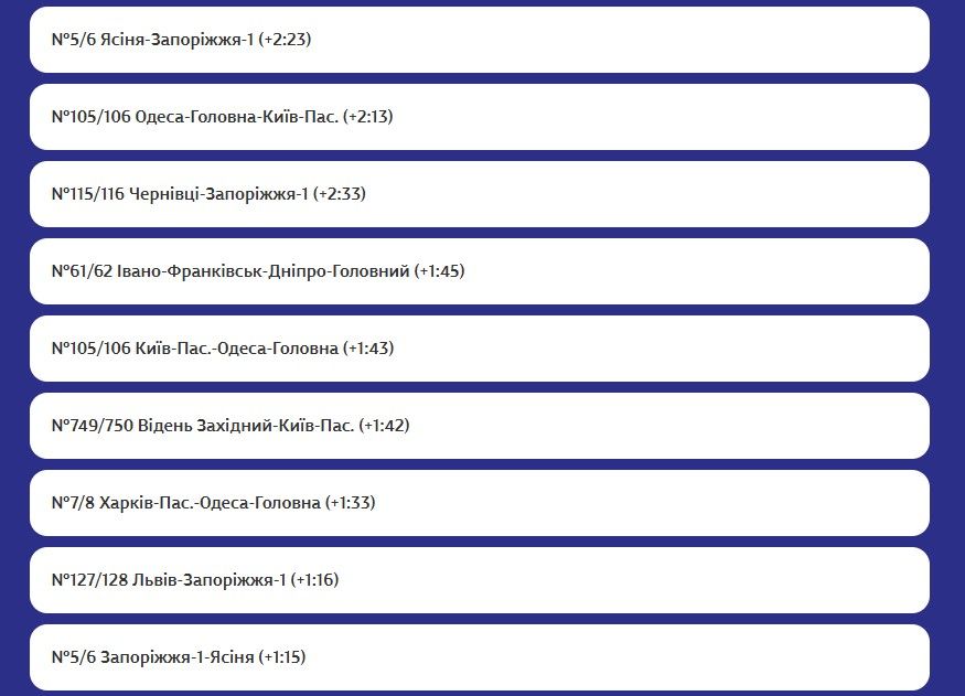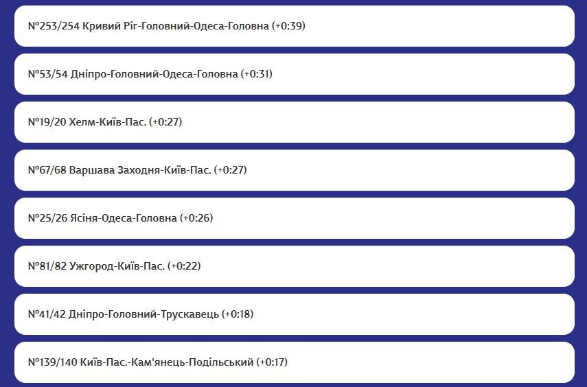 - №79/80 Дніпро – Львів (+ 6 годин 30 хвилин).