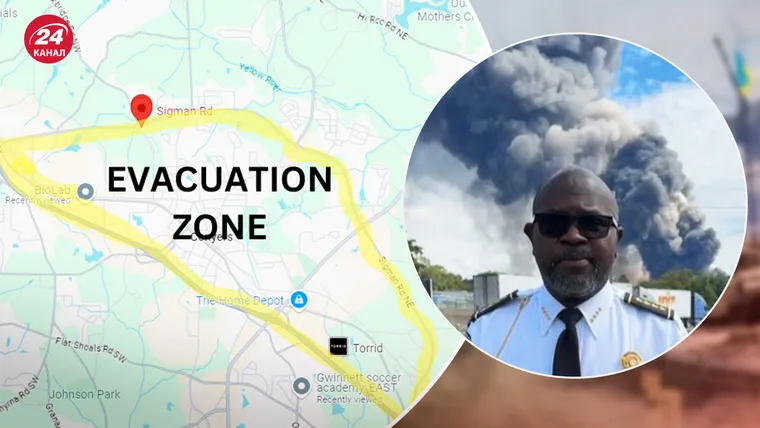 Величезний стовп диму піднявся в небо зранку 29 вересня в містечку Коньєрс округу Рокдейл поблизу Атланти. Через небезпеку було евакуйовано 17 тисяч людей, іншим порадили сховатися в будинках, вимкнути кондиціонери і тримати вікна та двері зачиненими. Усі школи, зони відпочинку, громадські місця закрили. Дороги було перекрито, роботу всіх компаній припинено.