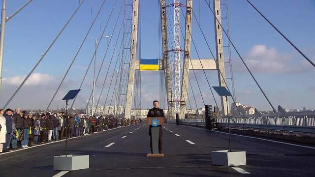 Вантовий міст через річку Дніпро звели у межах національної програми "Велике будівництво". Він є найвищим в Україні, адже висота пілонів, які тримають міст, – 166 метрів. Вночі міст буде підсвічений сучасною та яскравою LED–підсвіткою в синіх, жовтих та інших кольорах.