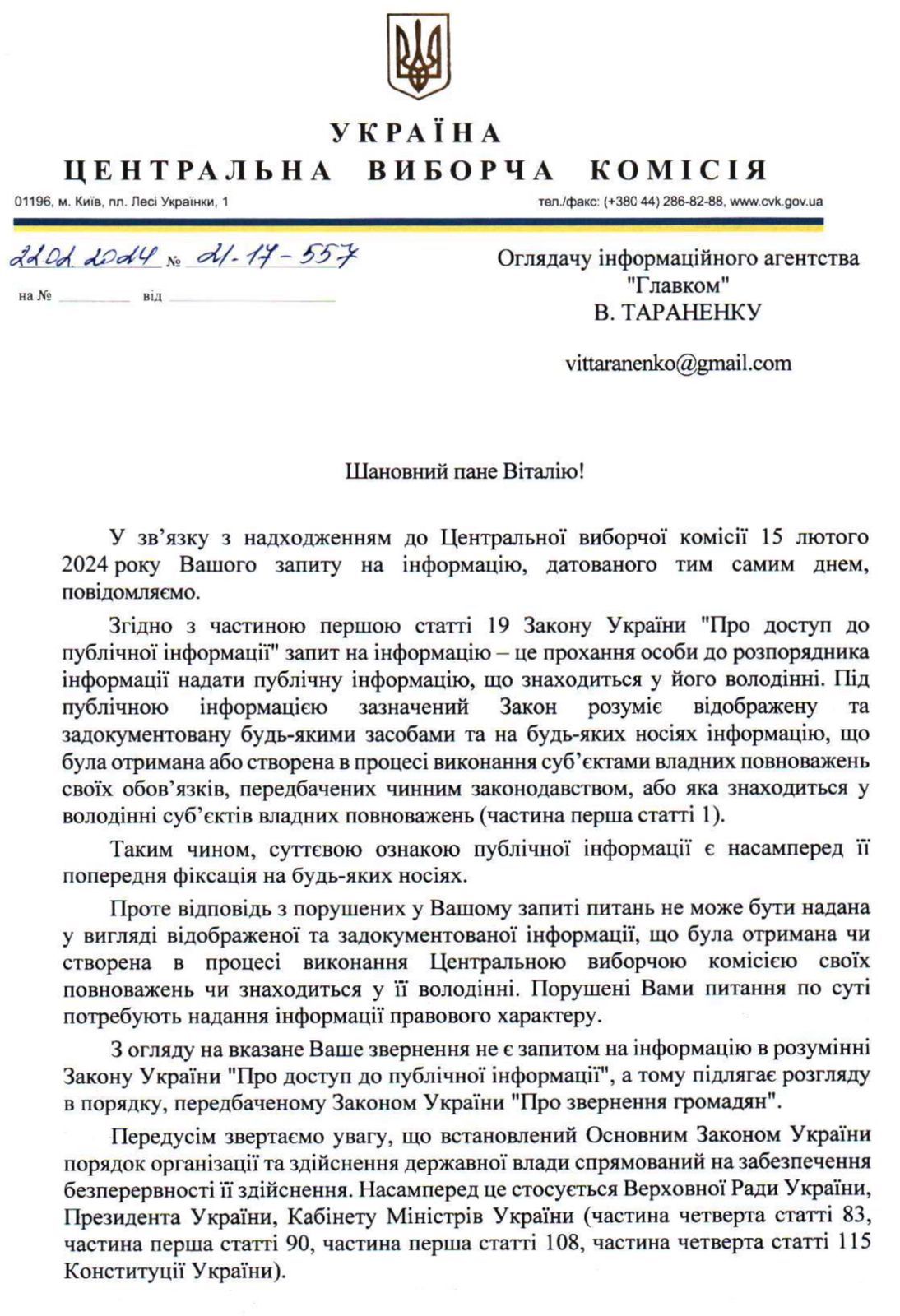А вибори президента мають бути призначені упродовж 30 днів після завершення воєнного стану. Про це мовиться в офіційній відповіді ЦВК на запит інтернет-видання "Главком".