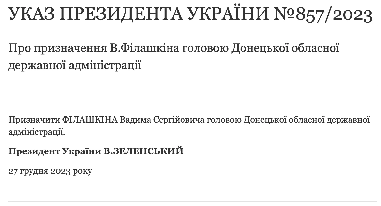 Того ж дня Володимир Зеленський призначив й голову Донецької обласної державної адміністрації. Ним став Вадим Філашкін протягом чотирьох років обіймав посаду заступника очільника ОДА.