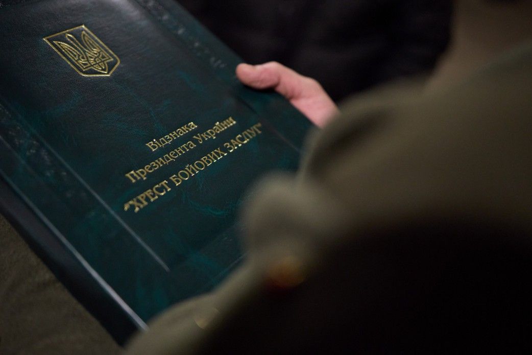 Також президент нагородив п'ятьох військовослужбовців і передав 18 нагород для вручення за місцем служби. Зокрема, Володимир Зеленський нагородив відзнакою Президента "Хрест бойових заслуг" полковника Олександра Бакуліна, полковника Павла Палісу та майора Андрія Мацькала.