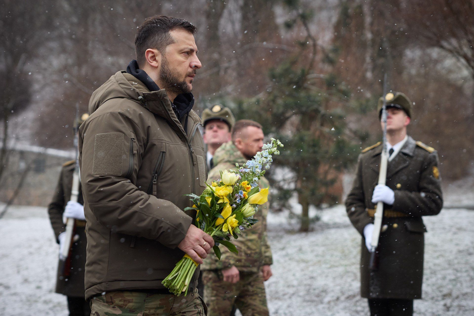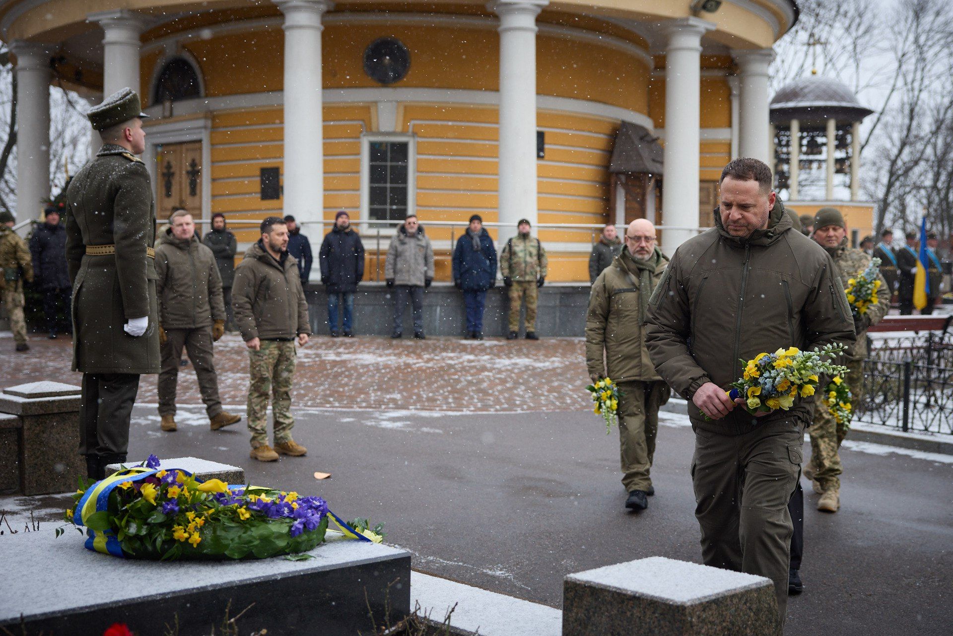 Президент України Володимир Зеленський разом з керівником ОП Андрієм Єрмаком вшанували пам'ять Героїв Крут.