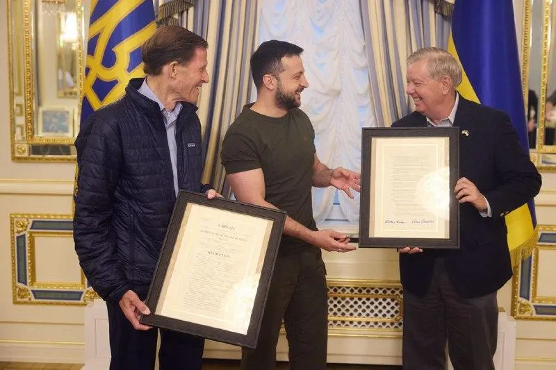 Глава ОП Андрій Єрмак відзначив, що Грем та Блюменталь є співавторами відповідної резолюції із закликом до держсекретаря США. У червні її підтримав Комітет Сенату із міжнародних відносин. Сенатори вручили Володимиру Зеленському копію резолюції.