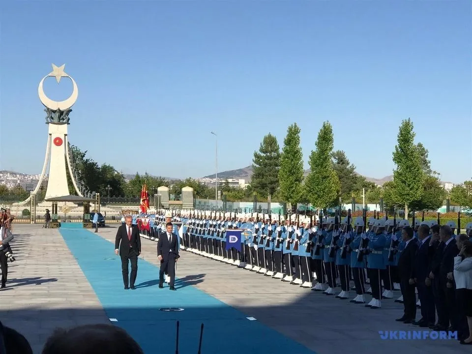 Спочатку в Анкарі пройшла офіційна церемонія зустрічі Зеленського та Ердогана. Лідери вийшли на площу перед Палацом Президента Туреччини під гімни двох держав.