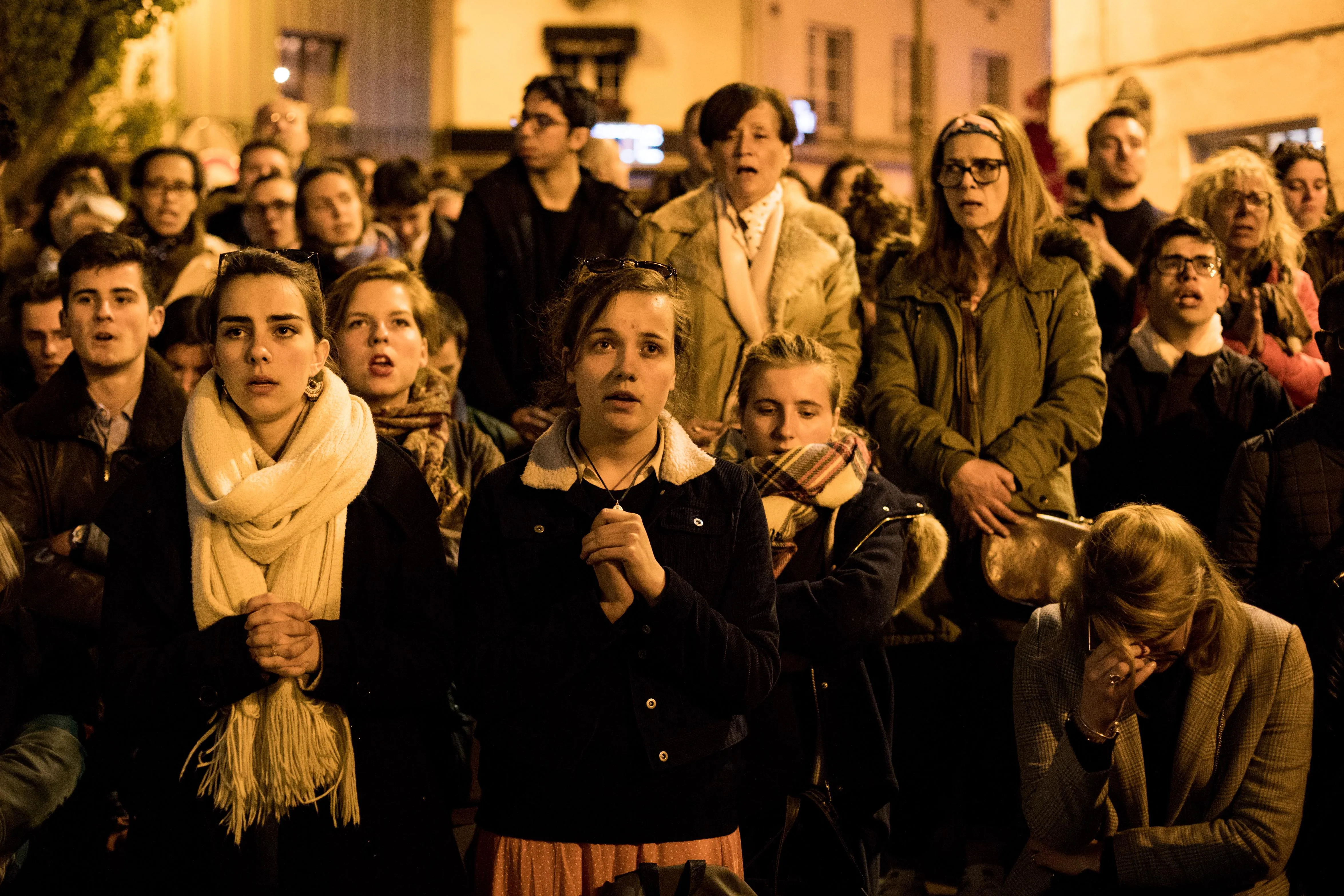 Під час пожежі у Нотр-Дамі тисячі гостей Парижа разом із місцевими молились поруч із храмом, щоб пожежникам вдалося врятувати його. Люди плакали та стояли на вулицях міста на колінах.