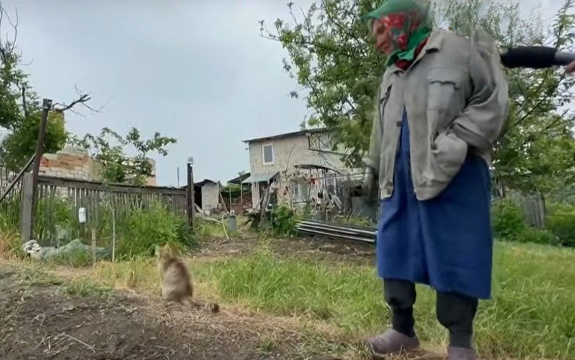 Жінка весь день проводить на городі та ладить разом з родиною флігель, який залишився не повністю розбитим. Ця робота дозволяє її рятуватись морально та емоційно.