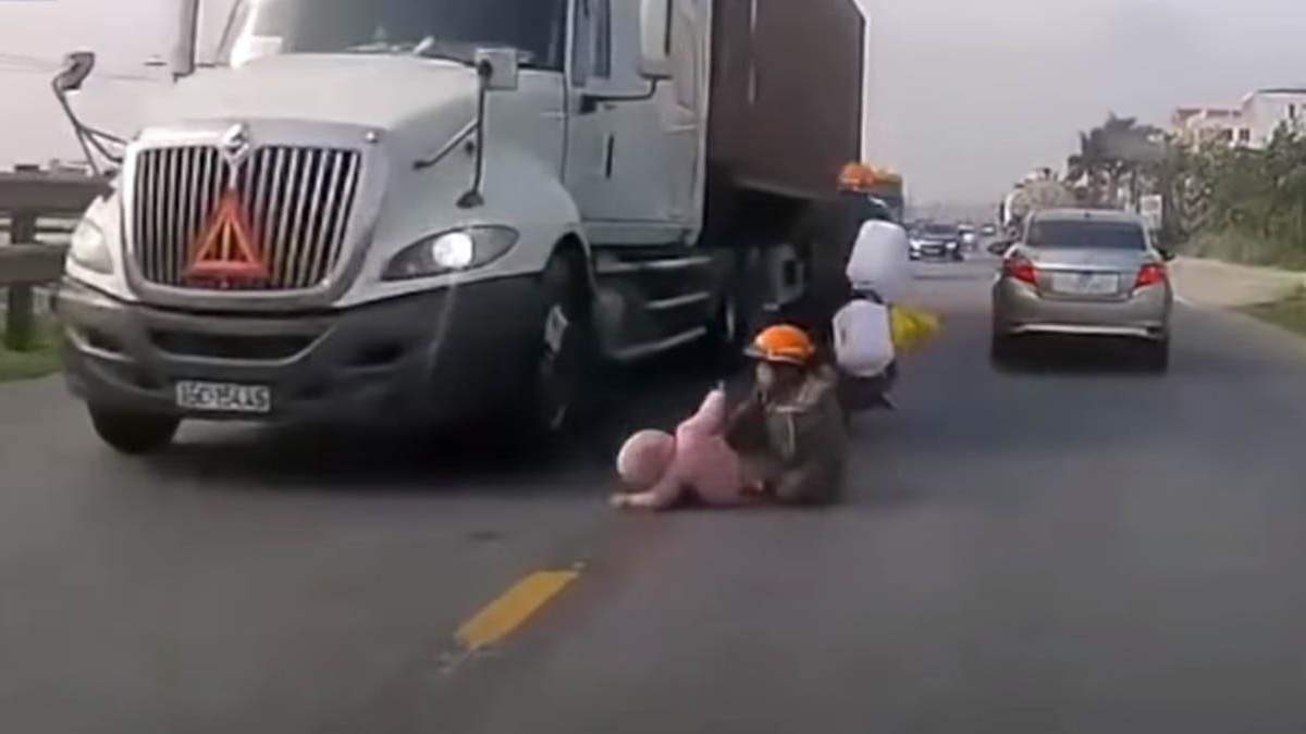 Їх викинуло до розділової лінії шосе, де в цей час їхала велика вантажівка. Жінка встигла миттєво відреагувати та висмикнути малюка, що полетів під фуру. Вона врятувала життя дитині буквально за секунду до страшної трагедії.